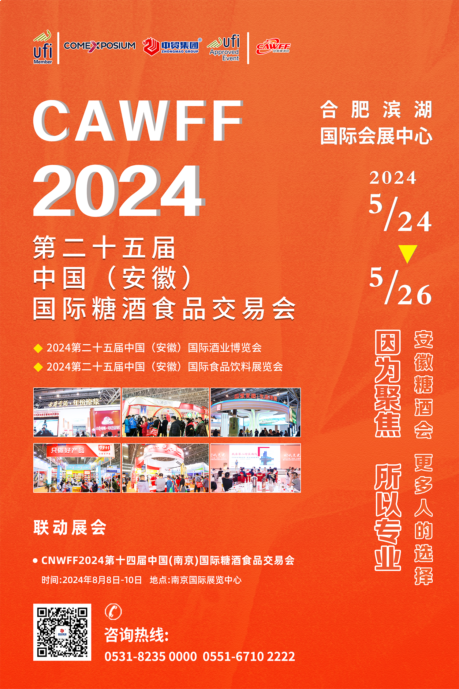據(jù)悉,5月24-26日,CAWFF2024第二十五屆中國(guó)(安徽)國(guó)際糖酒食品交易會(huì)將于合肥濱湖國(guó)際會(huì)展中心盛大舉辦。【主題展:2024第二十五屆中國(guó)(安徽)國(guó)際酒業(yè)博覽會(huì)、2024第二十五屆中國(guó)(安徽)國(guó)際食品飲料展覽會(huì)】