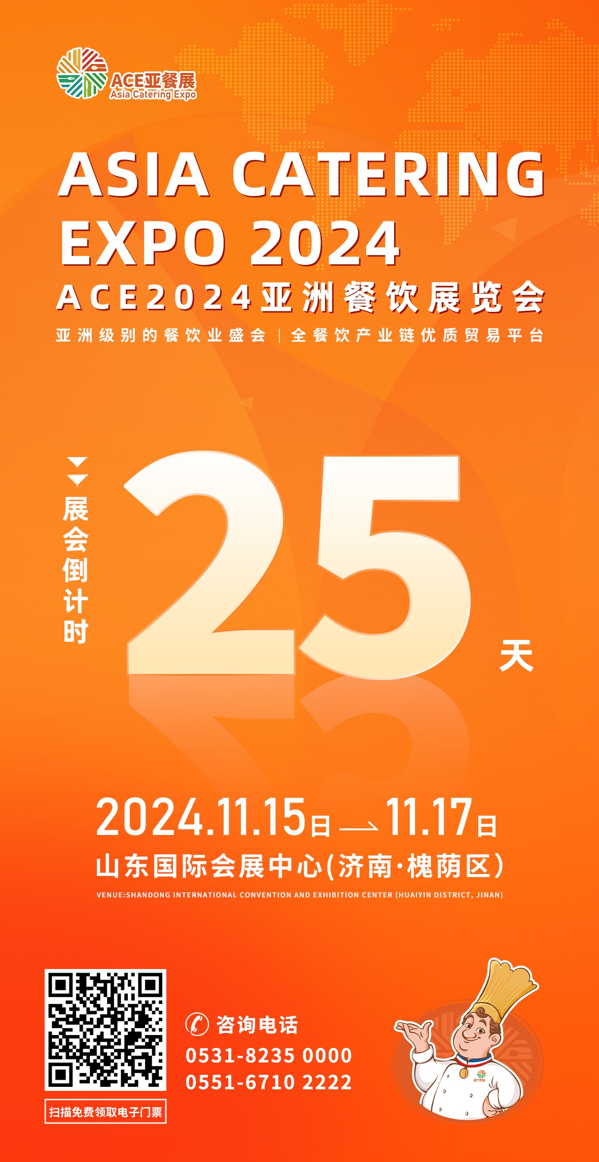 目前,ACE2024亞餐展招商工作已進入收尾階段,專業(yè)觀眾預登記正在火熱進行,免費門票限時發(fā)放中。展會將于11月15-17日在山東國際會展中心(濟南市)盛大舉辦。