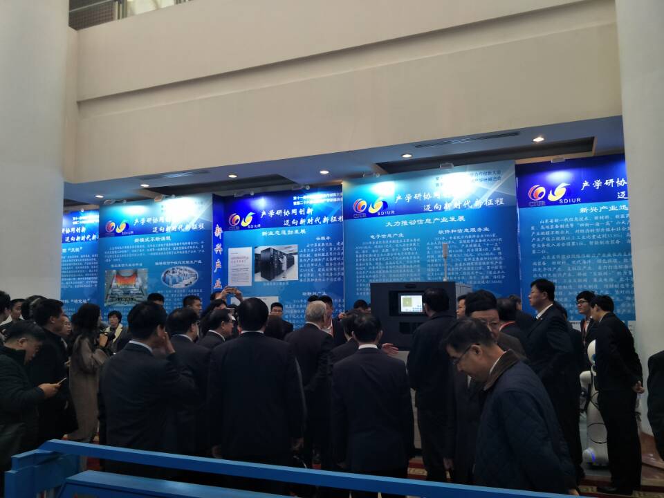 與會代表還參觀了山東省產(chǎn)學研展洽會。山東省委省政府高度重視產(chǎn)學研合作創(chuàng)新,從1991年開始連續(xù)25年舉辦產(chǎn)學研展洽會,有計劃、有步驟地組織開展各類產(chǎn)學研活動。在各級黨委政府的有力推動下,我省產(chǎn)學研協(xié)同創(chuàng)新不斷向縱深層次推進,合作模式日趨深化,已成為我省企業(yè)技術(shù)創(chuàng)新的理念和品牌。截至目前,省政府已與24家國內(nèi)外知名高校、科研院所就產(chǎn)學研合作簽訂了戰(zhàn)略合作協(xié)議,建成各類新型研發(fā)機構(gòu)109家,從事技術(shù)研發(fā)和轉(zhuǎn)化的人員6000余人;省級以上企業(yè)技術(shù)中心均與高??蒲性核⒘朔€(wěn)定的產(chǎn)學研合作關(guān)系,通過產(chǎn)學研合作完成的企業(yè)技術(shù)項目占比已達95%以上,產(chǎn)學研合作在推動工業(yè)新舊動能轉(zhuǎn)換上發(fā)揮了重要作用。展洽會突出新舊動能轉(zhuǎn)換,以“新技術(shù)、新業(yè)態(tài)、新模式、新產(chǎn)業(yè)”促“智慧產(chǎn)業(yè)化、產(chǎn)業(yè)智慧化、跨界融合化、品牌高端化”實現(xiàn)“傳統(tǒng)產(chǎn)業(yè)提質(zhì)效、新興產(chǎn)業(yè)提規(guī)模、跨界融合提潛能、品牌高端提價值”為主線,匯聚了威高妙手“s”微創(chuàng)手術(shù)機器人、海信計算機輔助手術(shù)系統(tǒng)、浪潮天梭M13、中集來福士藍鯨一號海洋鉆井平臺、盛瑞傳動混合動力八擋自動變速器、卡薩帝雙子云裳洗衣機等一大批我省企業(yè)通過產(chǎn)學研合作取得的,引領(lǐng)全省工業(yè)發(fā)展的重大創(chuàng)新項目,展示了近年來山東省產(chǎn)學研合作取得的豐碩成果。展洽會發(fā)布了省內(nèi)外近50家重點高校、科研院所最新科技成果1600余項,省內(nèi)近400家企業(yè)技術(shù)難題、人才需求500余項,為企業(yè)與知名專家、學者及研發(fā)機構(gòu)搭建了直接交流平臺,達成了一大批重要合作意向。